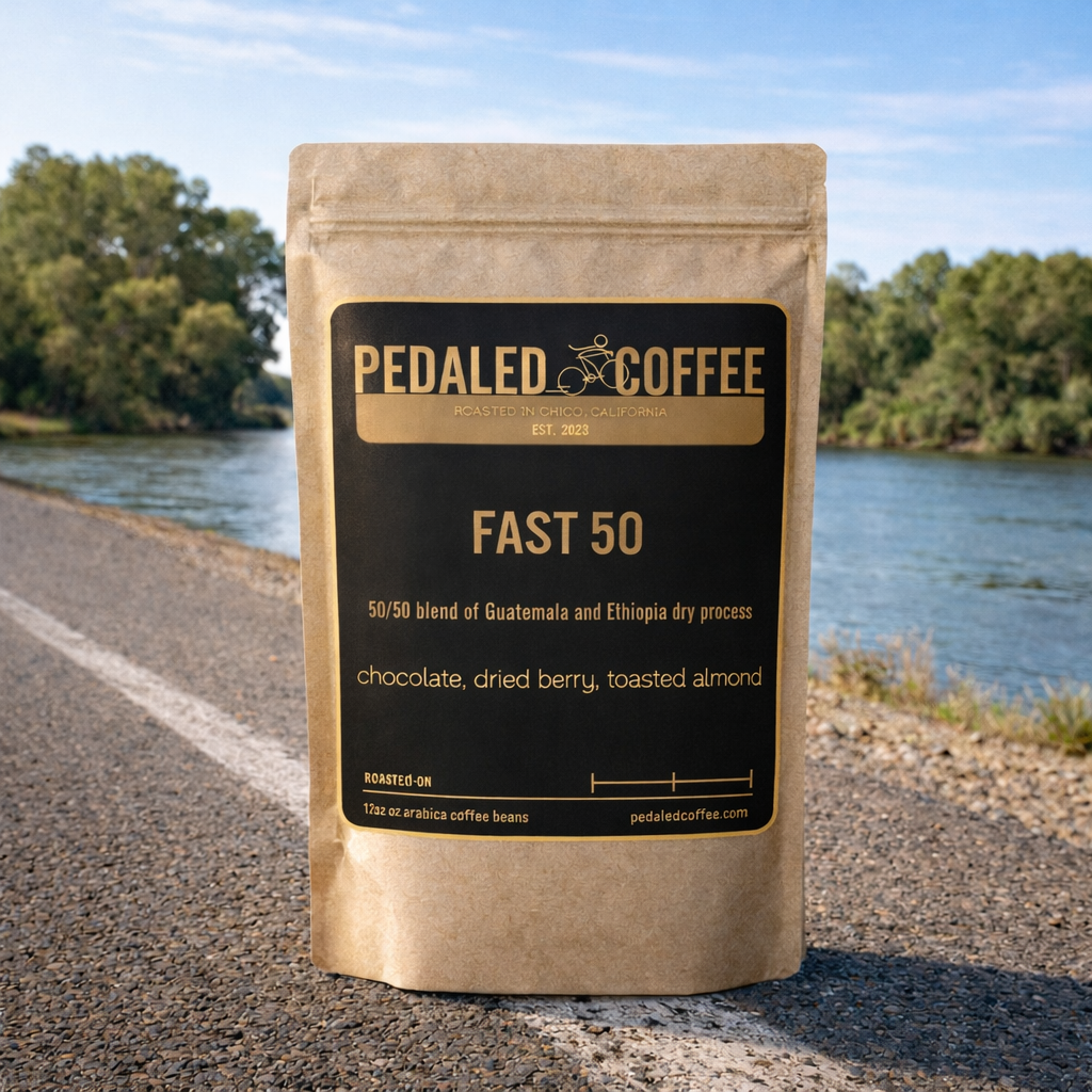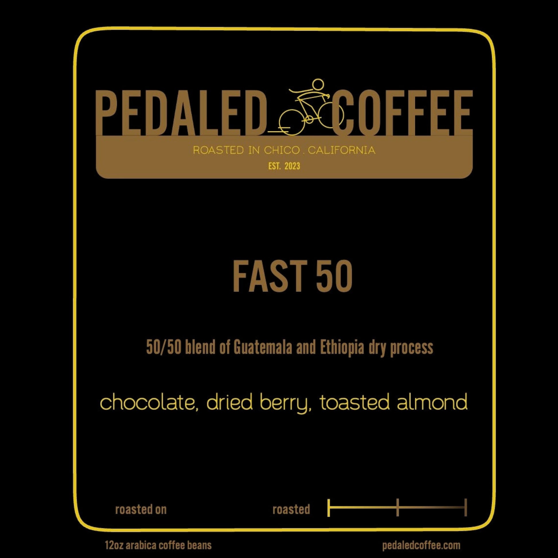 Blend of 50% Guatemala Organic Huehuetenengo and 50% Ethiopia Dry Process Guji Buku.